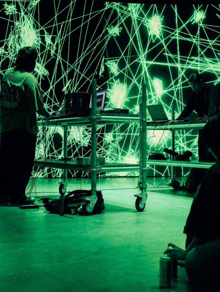 HEAR/HEX/HALT Live Visual by sahapon (pnine) Live Sound by nona, Goethe-Institut Thailand, 2025, bangkok Code, as a language that acts within the phygital realm, resonates with one of the oldest and most mystical roles of natural language— its imaginary magical ability to reshape the fabric of physical reality around us. This brings coding, particularly in creative practices